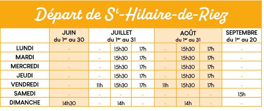 Les horaires des circuits peuvent varier selon la période et la circulation.